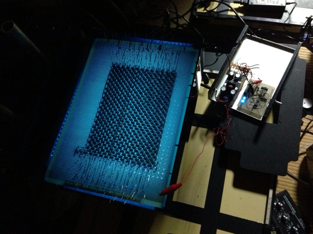 ブルーのLEDを取り敢えず 並列接続で結線して 一つのラインにしたので、試験点灯。